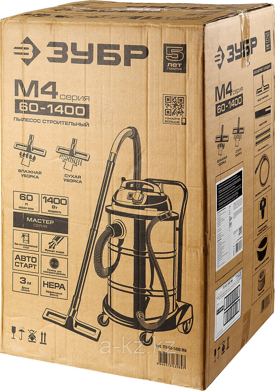 ЗУБР М4, 60 л, 1400 Вт, строительный пылесос (ПУ-60-1400 М4)