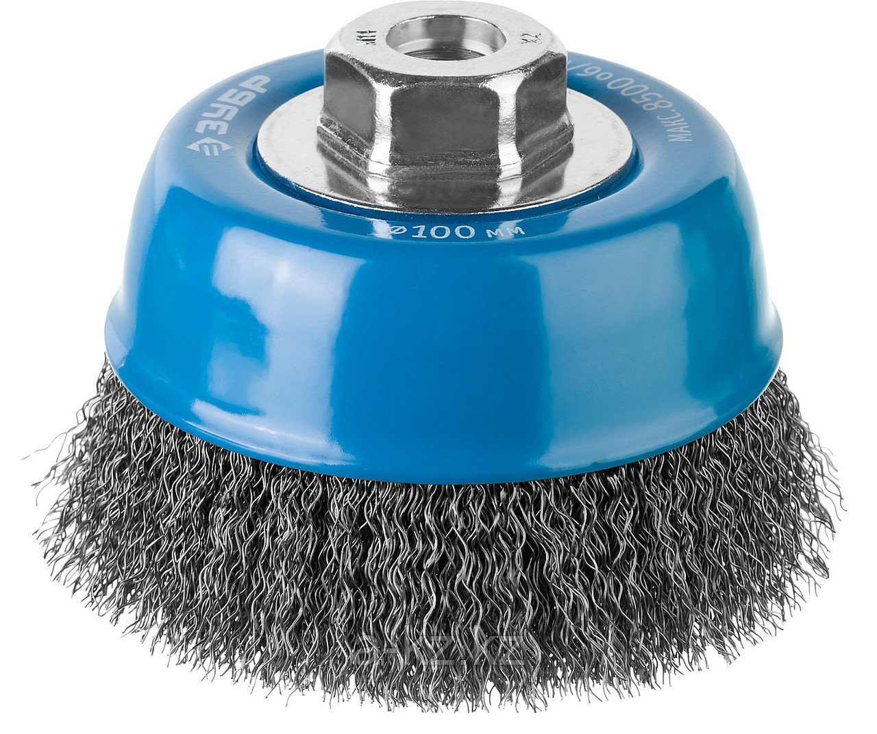 ЗУБР 100 мм, витая, стальная проволока 0.3 мм, чашечная щетка-крацовка для УШМ, Профессионал (35261-100)