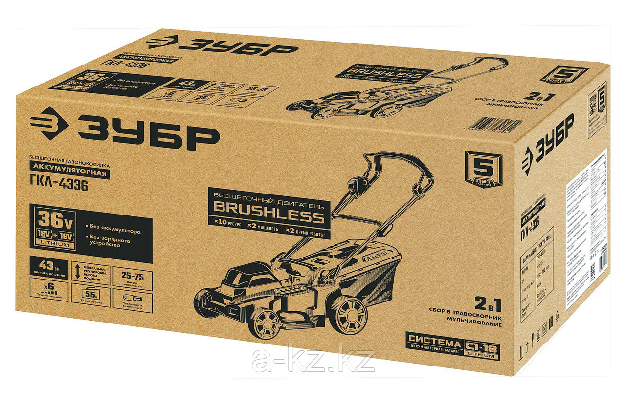 ЗУБР С1-18, 36 В, 43 см, без АКБ, бесщеточная газонокосилка (ГКЛ-4336)