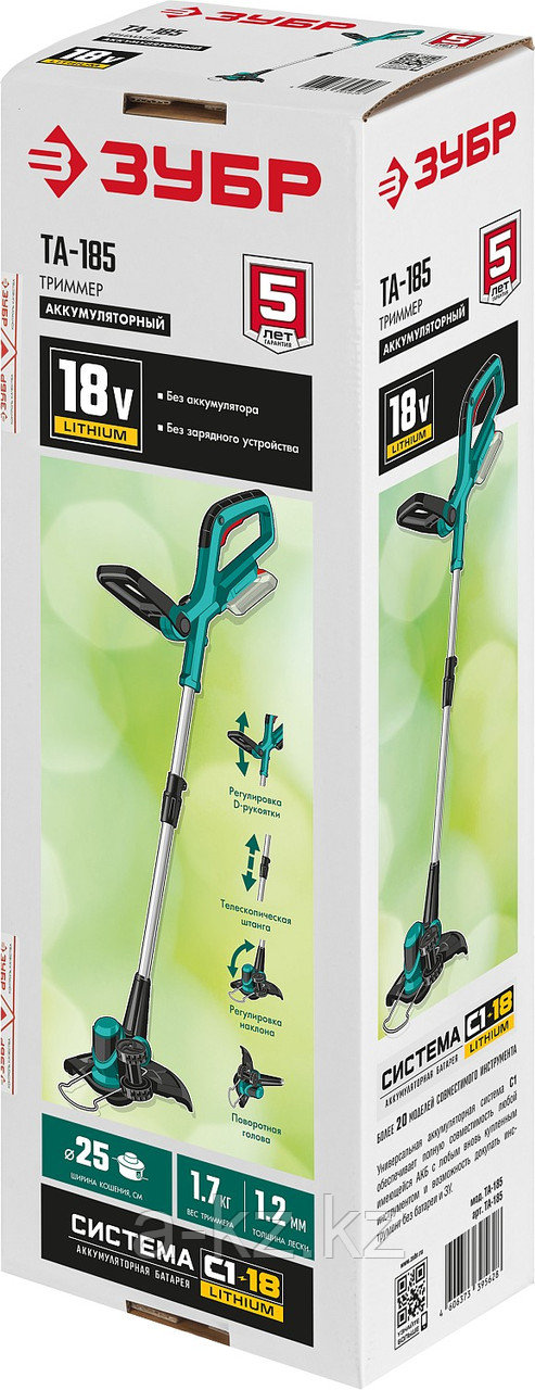ЗУБР С1-18, 18 В, 25 см, без АКБ, аккумуляторный триммер (ТА-185)