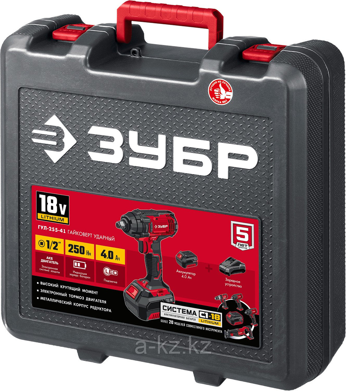 ЗУБР С1-18, 18 В, 250 Н·м, 1 АКБ (4 А·ч), гайковерт ударный, кейс (ГУЛ-255-41)