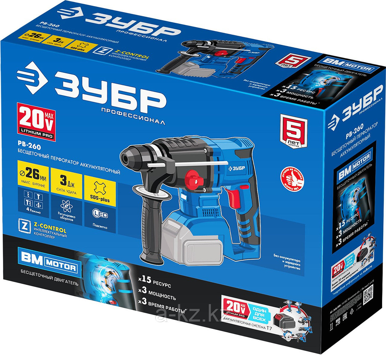 ЗУБР Т7, 20 В, 26 мм, без АКБ, бесщеточный перфоратор, Профессионал (PB-260)