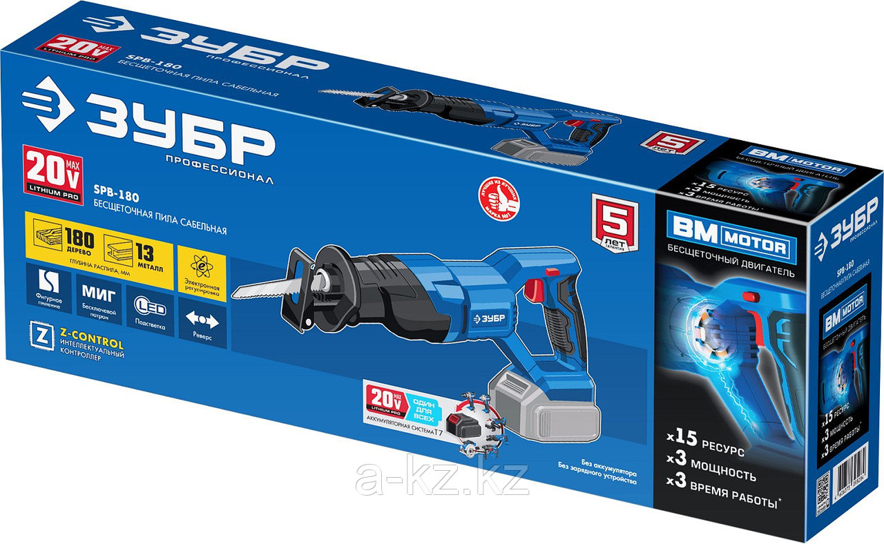 ЗУБР Т7, 20 В, 180 мм, без АКБ, бесщеточная пила сабельная, Профессионал (SPB-180)