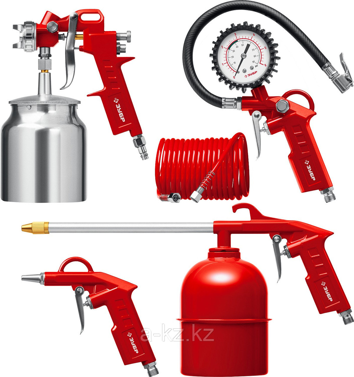 | В наборе | краскопульт, пистолет для нанесения защитных покрытий, пистолет для продувки, пистолет для подкачки шин, шланг |
